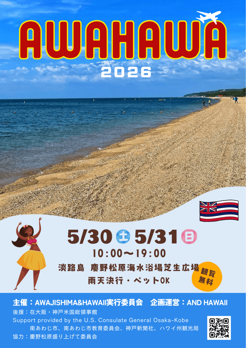 後援:在大阪・神戸米国総領事館、南あわじ市、南あわじ市教育委員会、神戸新聞社、ハワイ州観光局